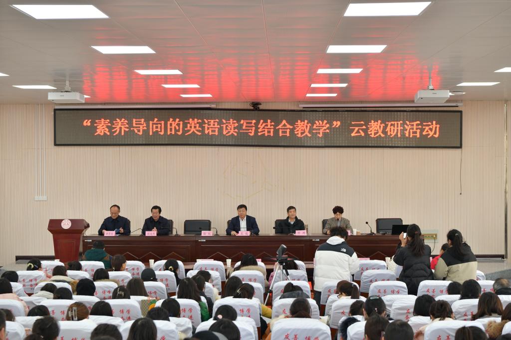 为进一步加强校地合作,推进院-所-校教研合作体联合教研,12月20日下午,宿州学院外国语学院联合宿州市教育体育局举办了“素质导向的英语读写教学”云教研活动。南京邮电大学刘艳教授、宿州市教育科学研究所所长刘远烈、宿州市教育科学研究所副所长侯姝琛、宿州市第一初级中学郭琦老师应邀参会。宿州市区中学英语教师代表和宿州市四县一区英语教师共3000余人通过线上线下相结合方式参会。宿州学院党委副书记王俊和宿州市教育体育局二级调研员佟涛出席开幕式并分别致辞。宿州学院外国语学院党委副书记、院长张雁凌主持开幕式。