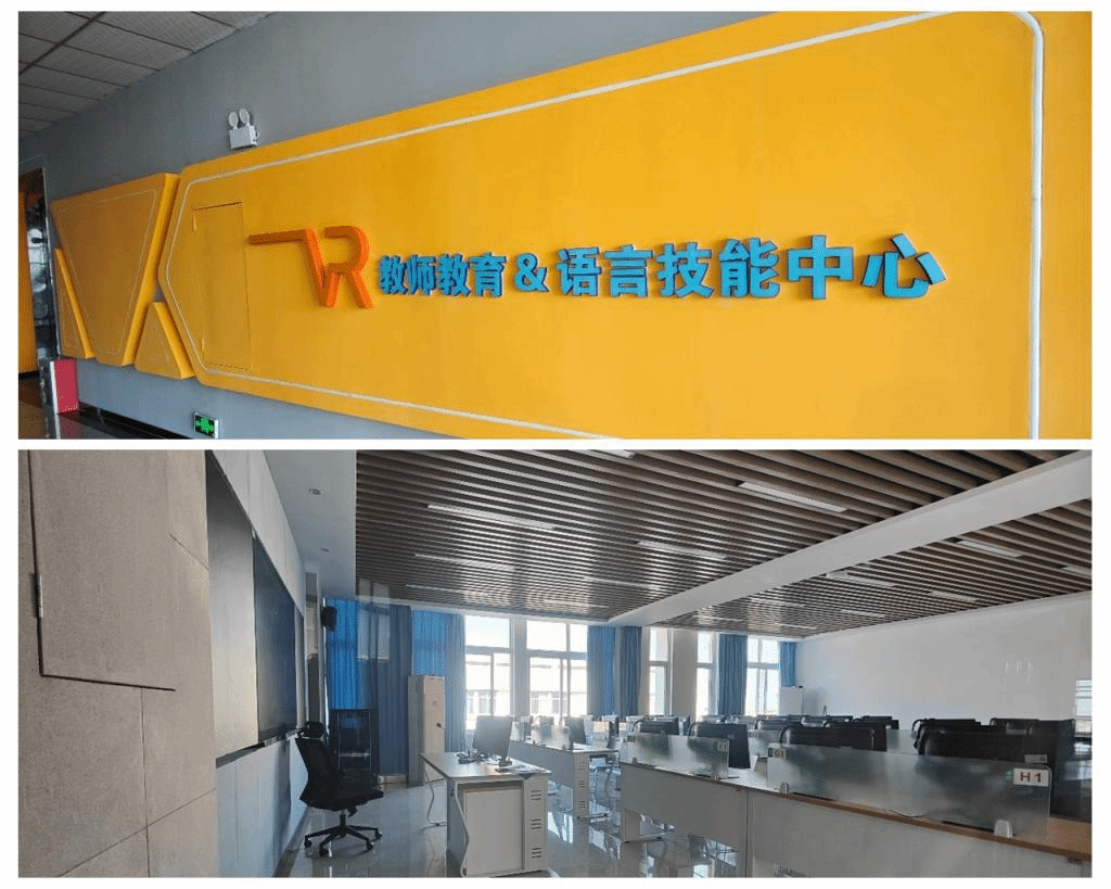 四是教学实验条件不断改善。学院建设有外语类实习实训中心,总占地3000余平方米。五年来,不断优化教学条件,新建三笔字实训室、智慧教室、VR师范技能及语言实训室、VR商务英语跨境电商实训室、跨境电商直播室等各类功能完善的实验实训室,能够充分满足教学实习实训任务。