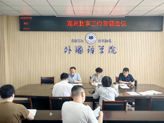 6月11日下午,外国语学院在逸夫楼A318召开了期末教学工作专题会议。此次会议由外国语学院院长张雁凌主持,旨在全面梳理和总结学院近期的教学工作,确保教学质量与管理的稳步提升。党委书记郝景东、副院长胡永近、各教研室主任以及各科室人员均出席了此次会议。