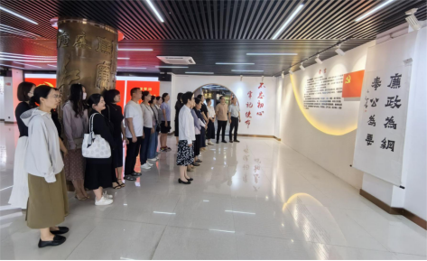 党员们先后参观了廉洁大厅、警示篇、法纪篇、忏悔篇、尚廉篇和决策篇六个教育展区。真实案例警醒全体党员坚守思想底线,提升廉洁意识,自觉学法、懂法、守法、用法,教育党员干部明法纪、知敬畏、存戒惧、守底线,增强反腐倡廉意识,筑牢思想防线、绷紧纪律之弦。最后,党委书记郝景东带领全体党员面对鲜红党旗,集体重温入党誓词。