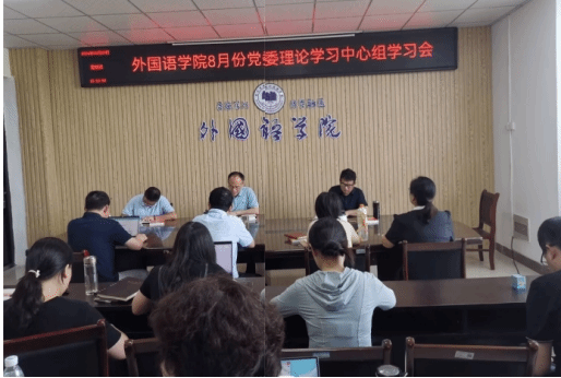 8月30日下午,外国语学院在逸夫楼A318会议室召开党委理论学习中心组(扩大)学习会,学院党委委员、科级干部和教研室主任参加。会议由党委书记郝景东主持。