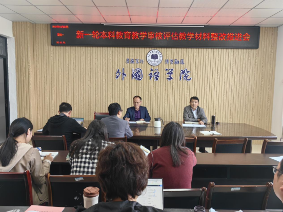 为推动新一轮本科教育教学审核评估工作,确保教学材料的质量与完整性,10月28日和11月4日下午,分别在外国语学院逸夫楼A318会议室召开新一轮本科教育教学审核评估教学材料整改推进会。党委书记郝景东、院长胡永近、副书记刘钢、各教研室主任、各科室负责人以及全体辅导员参会,会议由外国语学院院长胡永近主持。会议旨在明确整改方向,加强团队协作,共同提升学院的教育教学质量。