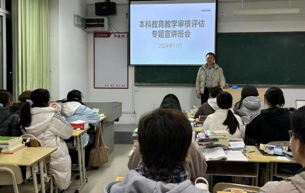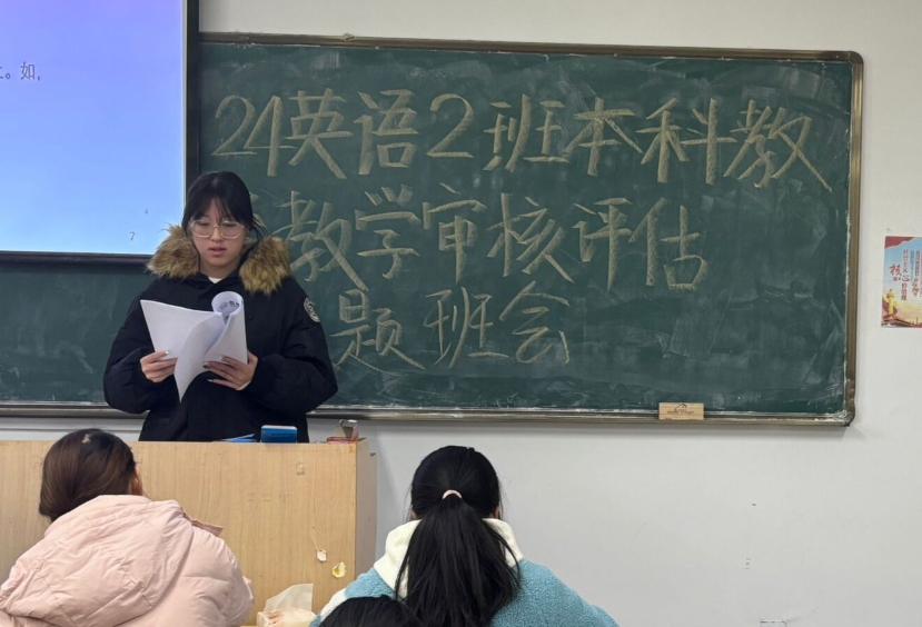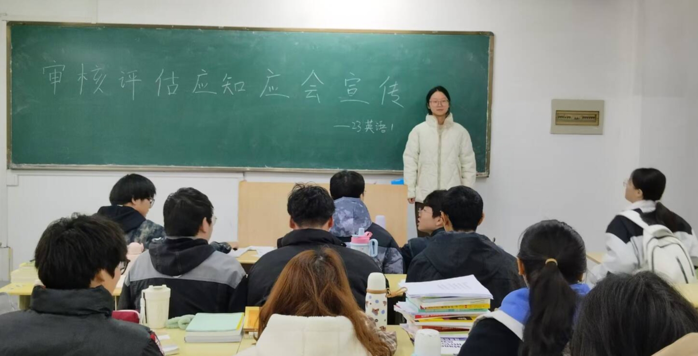 为了深入贯彻学校本科教育教学审核评估相关要求,提升班级整体管理水平与学生综合素质,外国语学院近期在各班级举办了以“凝聚共识,迎评促优”为主题的专题宣传班会。此次活动得到了全院师生的高度关注与积极参与,展现了师生们在面对重要任务前的团队精神与准备状态。
