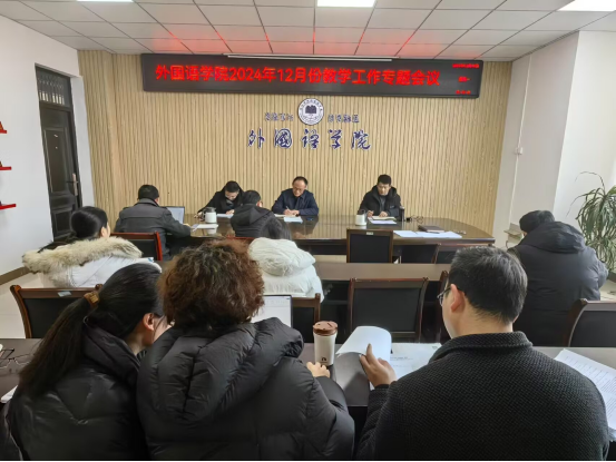 12月16日下午,外国语学院在逸夫楼A318召开了2024年12月份教学工作专题会议,党委书记郝景东、党委副书记、院长胡永近、副书记、纪委书记刘钢、各教研室主任和教学管理人员参会,会议由胡永近主持。会议议题主要围绕期末试卷印刷及考试安排、课程安排、2025届毕业论文开题、实习工作、学科竞赛和师范专业认证整改,以及《宿州学院学生学籍学历管理办法(修订)》和《宿州学院普通高等教育本科生学士学位授予办法(修订)》两个文件等多个方面展开。