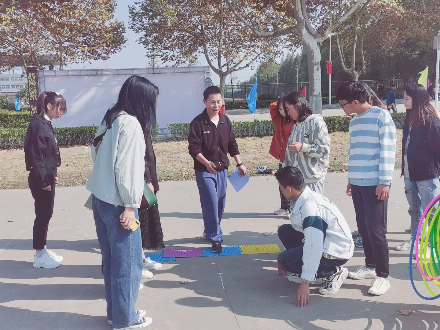 为了丰富大学生的课余生活,展现大学生团结协作精神,营造和谐向上的校园体育文化,全面提高大学生的综合素质,外国语学院于10月25日下午在篮球场举办第七届女子趣味运动会选拔赛。外国语学院众多选手参加八个项目的比赛,哨响后比赛正式开始,外国语学院团总支书记宋皓老师前来观看指导。