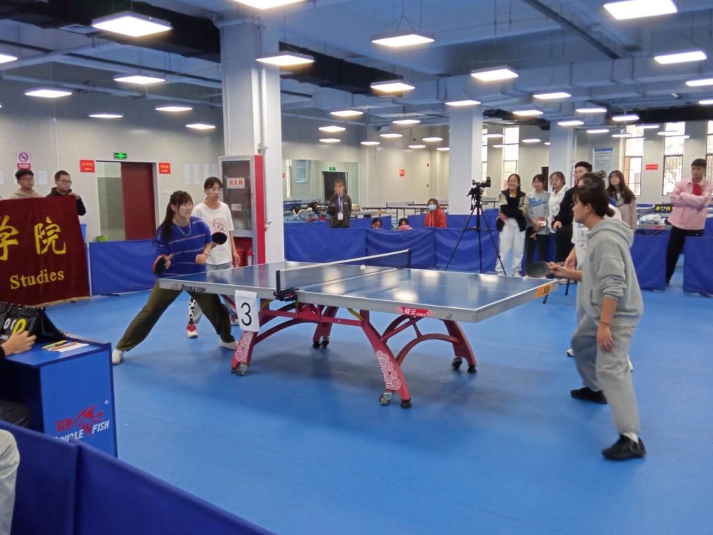 本次乒乓球联赛的主题是“‘乒’出国球气势,搏出青春风采”,经过激烈的竞争淘汰,六名分别来自外国语学院和体育学院的女性大学生进入了决赛。本次决赛分为两项,分别是女子团体和女子双打,比赛均采取五局三胜制,每局均采用十一分制。先进行的是女子团体比赛,可以看到在裁判员宣布比赛开始之后,选手们全神贯注,比分咬得很紧,选手们都秀出了自己的风采;在随后的女子双打比赛中,外国语学院选手抖擞精神,重振旗鼓,一鼓作气拿下了亚军,现场顿时欢呼声一片。