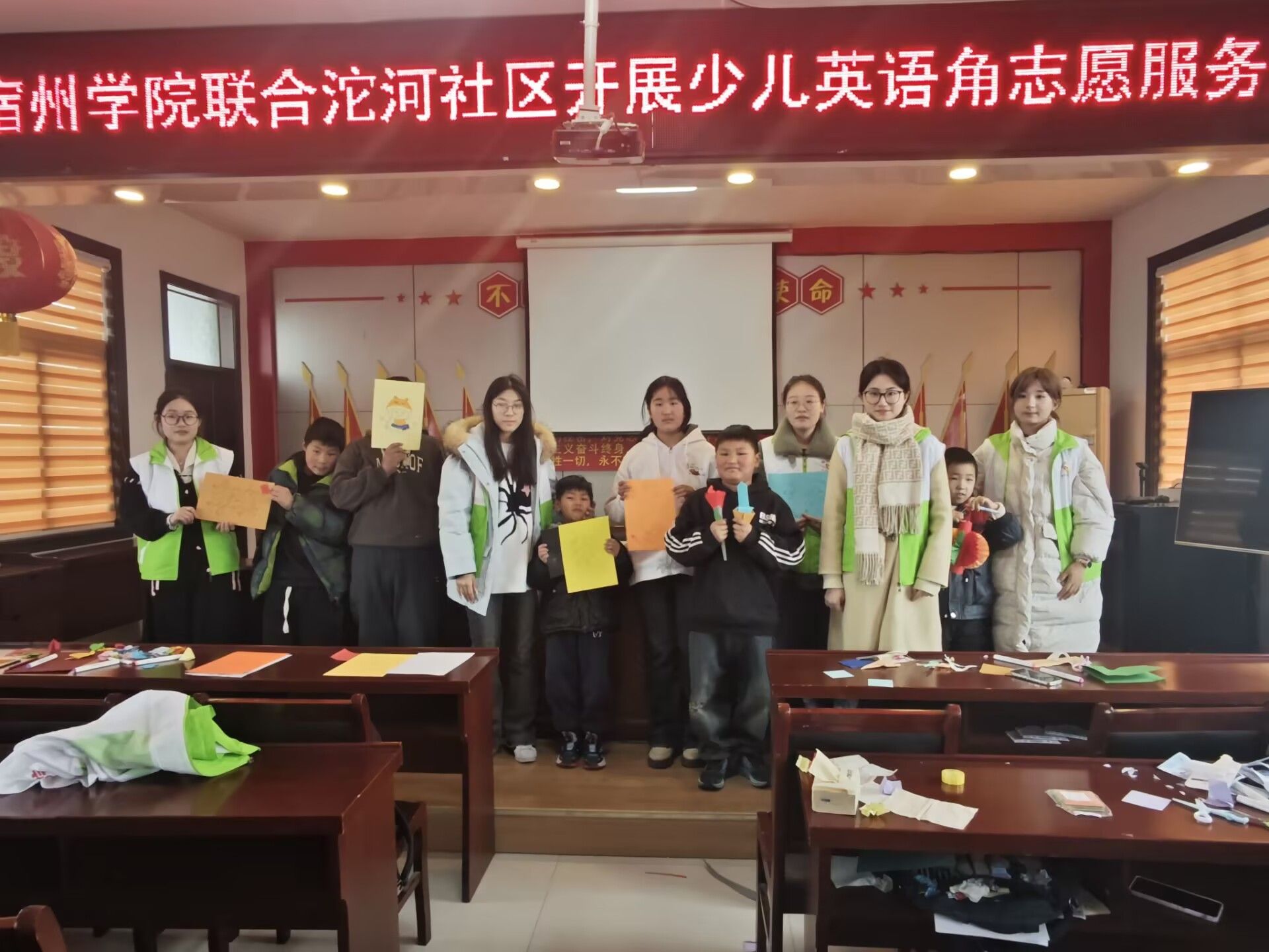 为弘扬中华优秀传统文化,积极践行新时代雷锋精神,3月15日上午,宿州学院外国语学院青羽志愿者队,深入沱河社区,开展了主题为“双语传承中国年”少儿英语角志愿活动。本次活动以“语言为桥,文化为媒”为核心理念,通过趣味盎然的英语教学、手工体验等多种形式,为社区儿童精心打造了一场沉浸式的双语文化实践课。
