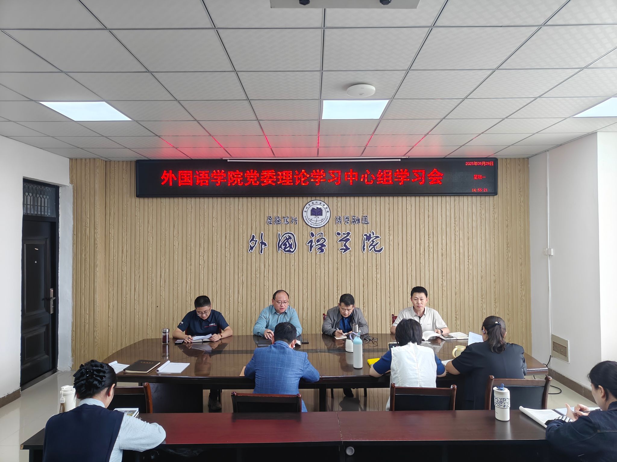 为深入学习贯彻《习近平谈治国理政》第五卷精神,9月29日下午,外国语学院在逸夫楼A318会议室召开党委理论学习中心组学习会,学院党委委员、科级干部和党支部书记参加,会议由党委书记王金岭主持。