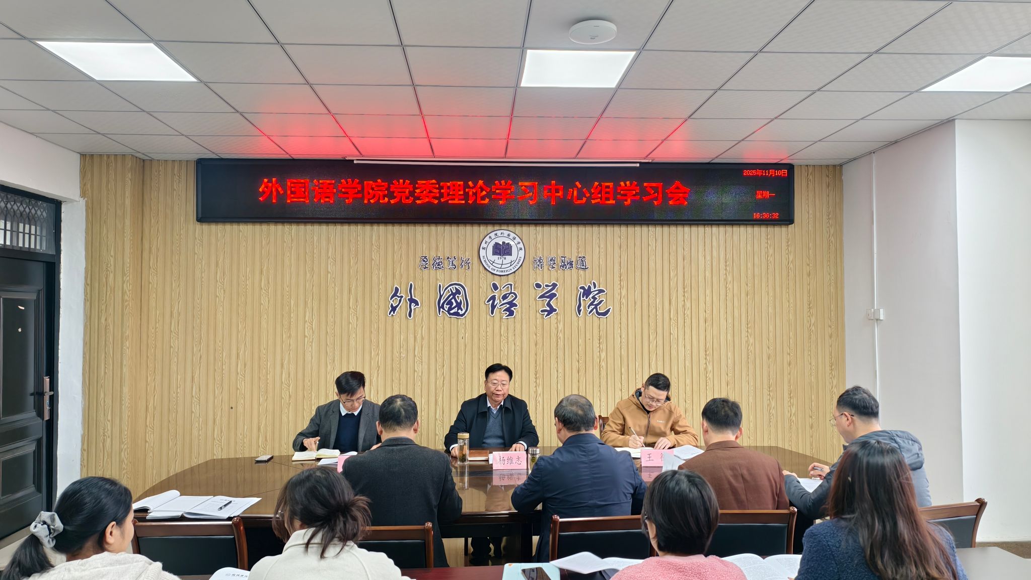 2025年11月10日,外国语学院在逸夫楼318会议室召开11月份党委理论学习中心组学习会。校党委常委、副校长杨维志列席旁听,学院党委理论学习中心组成员、科级干部、党支部书记及辅导员参加会议,会议由学院党委书记王金岭主持。