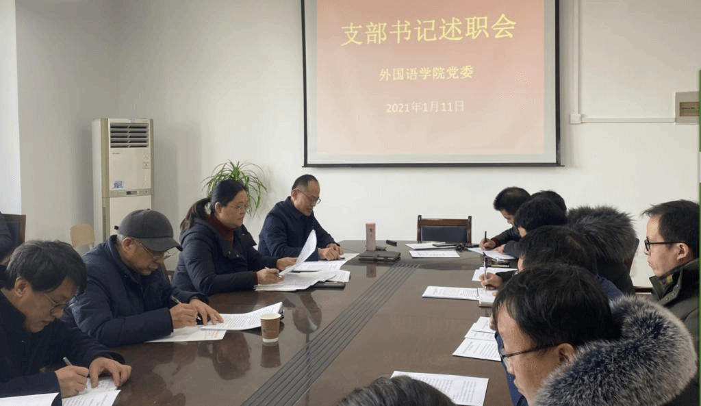 为进一步加强基层党组织建设,提升党支部战斗堡垒作用。根据《中共宿州学院委员会关于做好2020年度基层党组织书记抓党建述职评议考核工作实施方案》的要求,1月11日,外国语学院召开了基层党支部年度述职评议大会。校督导组成员数学与统计学院党委书记李刚、组织员徐依俭及学院党委班子、教师代表、学生代表莅临现场,听取了各党支部书记的工作报告。会议由党委副书记郝景东主持。