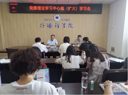 9月9日下午,外国语学院在逸夫楼A318会议室召开了党委理论学习中心组(扩大)学习会,学院党委委员、党支部书记、科级干部以及教研室主任参加。会议由党委书记郝景东主持。