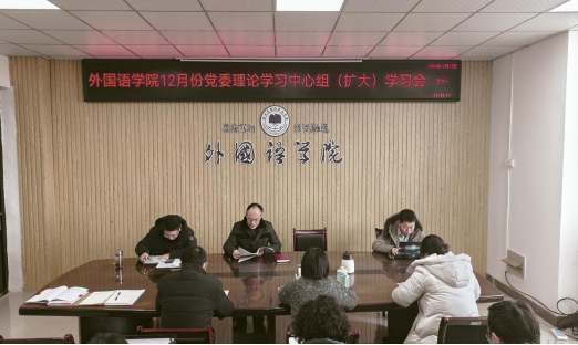 12月23日下午,外国语学院在逸夫楼A318召开党委理论学习中心组(扩大)学习会,学院党委委员、党支部书记、科级干部参加。会议由党委书记郝景东主持。