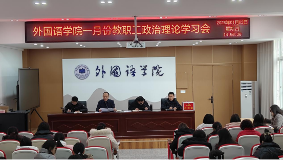 1月2日,外国语学院在逸夫楼一楼会议室召开教职工政治理论学习会,旨在提升教职工政治素养,凝聚思想共识。本次会议由学院党委书记郝景东主持,全体教职工参加了会议。