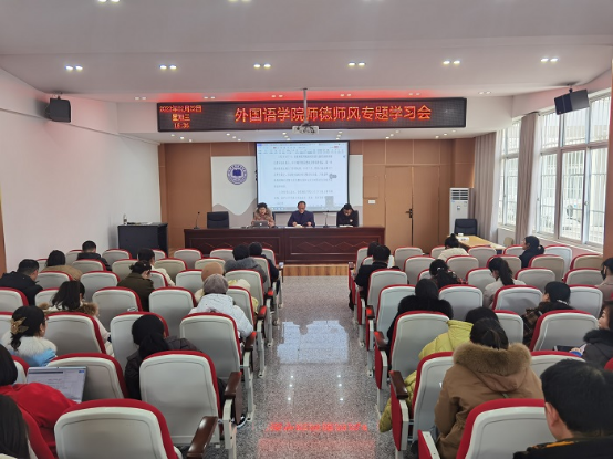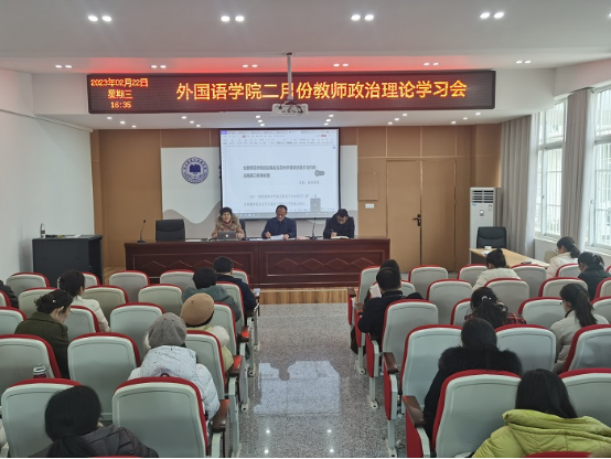 为了进一步学习贯彻党的二十大精神,落实立德树人根本任务,加强师德师风教育,2月22日下午,外国语学院召开了全体教职工政治理论学习会暨师德师风教育专题会议,会议由党委书记郝景东主持。