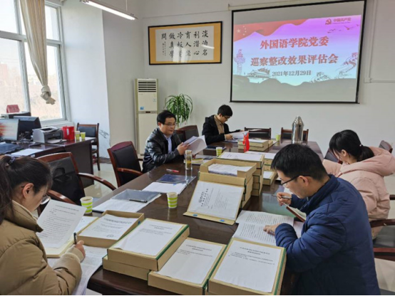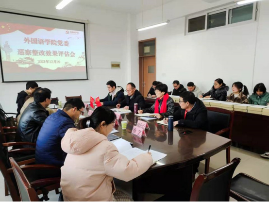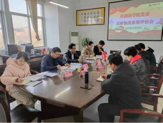 12月29日,以校党委巡察工作办公室主任赵国付为组长,生物与食品工程学院党委副书记、纪委书记李娜为副组长,组织部组织科长张彪、教师工作部师资与人才科长张浩、党委巡察工作办公室秘书徐艺为成员的学校评估组,对外国语学院党委巡察整改效果进行了现场评估。