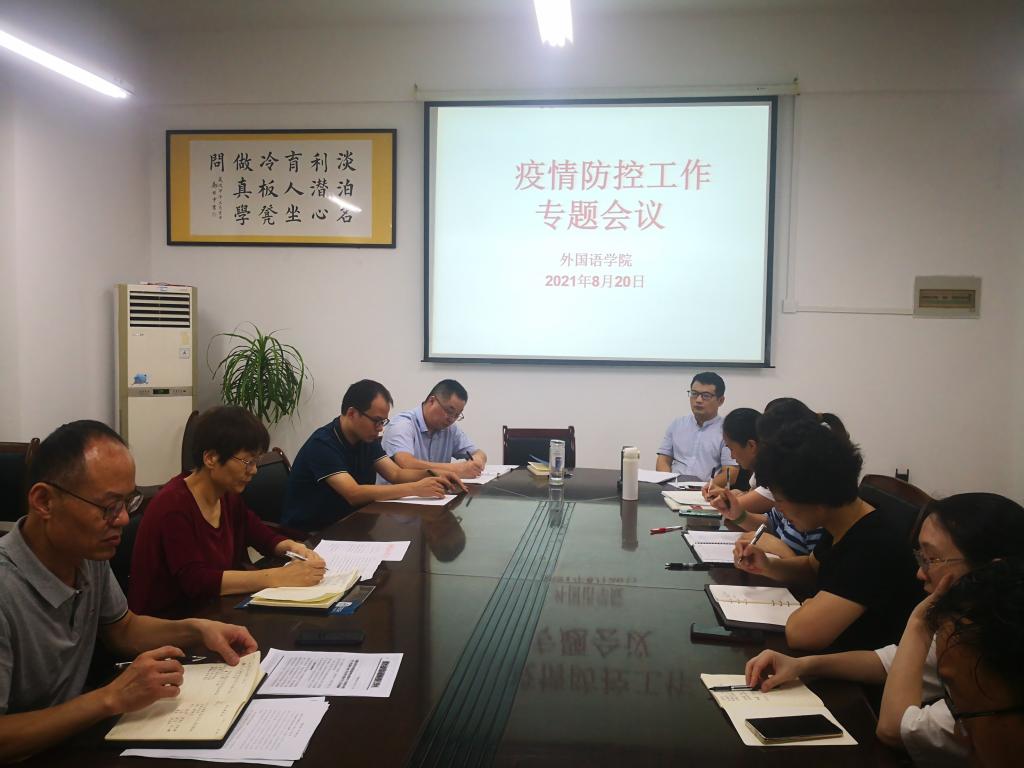 8月20日,外国语学院在逸夫楼A318会议室召开疫情防控工作专题会议。党委副书记、院长张雁凌、党委副书记(临时负责)郝景东、科级干部、党支部书记、教研室主任等参加会议。