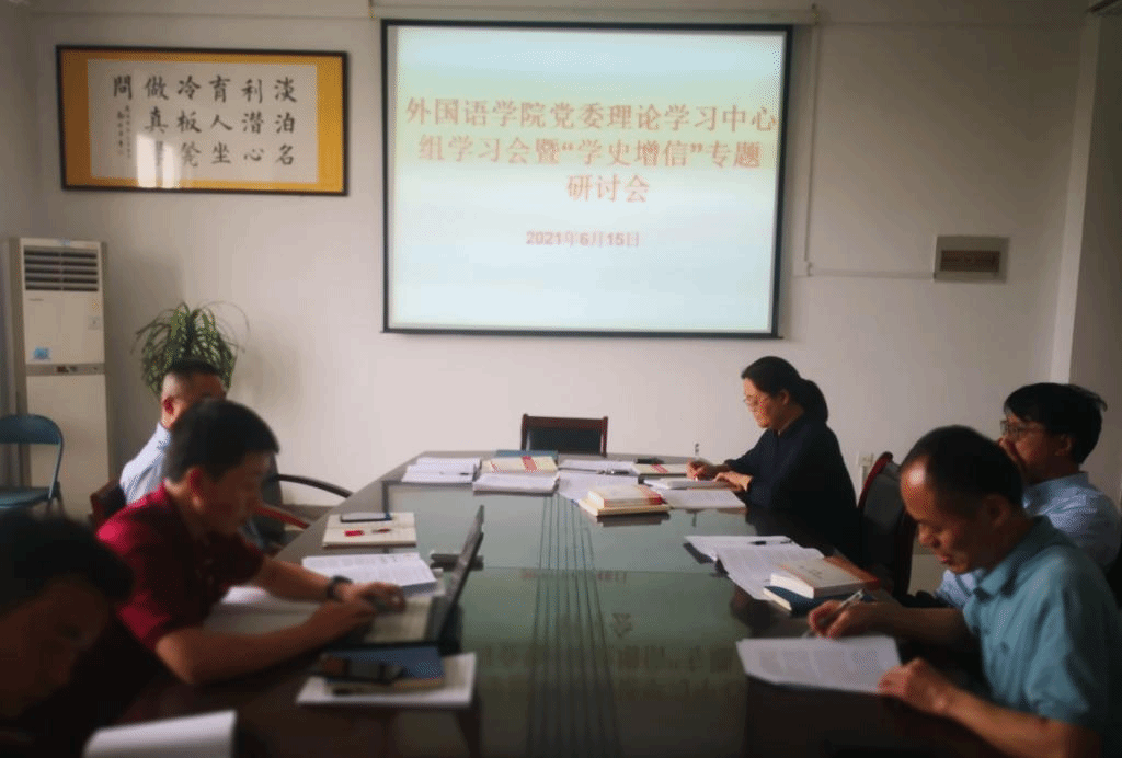6月15日,外国语学院召开理论学习中心组学习会暨“学史增信”专题研讨会。院党委书记王华、党委副书记、院长李加强、党委副书记、副院长郝景东、科级干部、各支部书记参加会议。会议由党委书记王华主持。