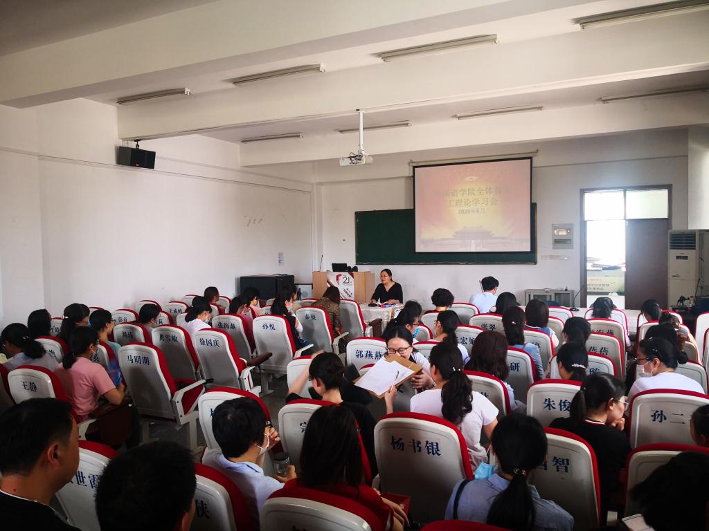 6月3日,外国语学院在逸夫楼一楼会议室召开了全体教职工理论学习会议,学习传达全国两会和习近平总书记在全国两会期间的重要讲话等精神。学院全体教职工参加会议,会议党总支书记王华主持。