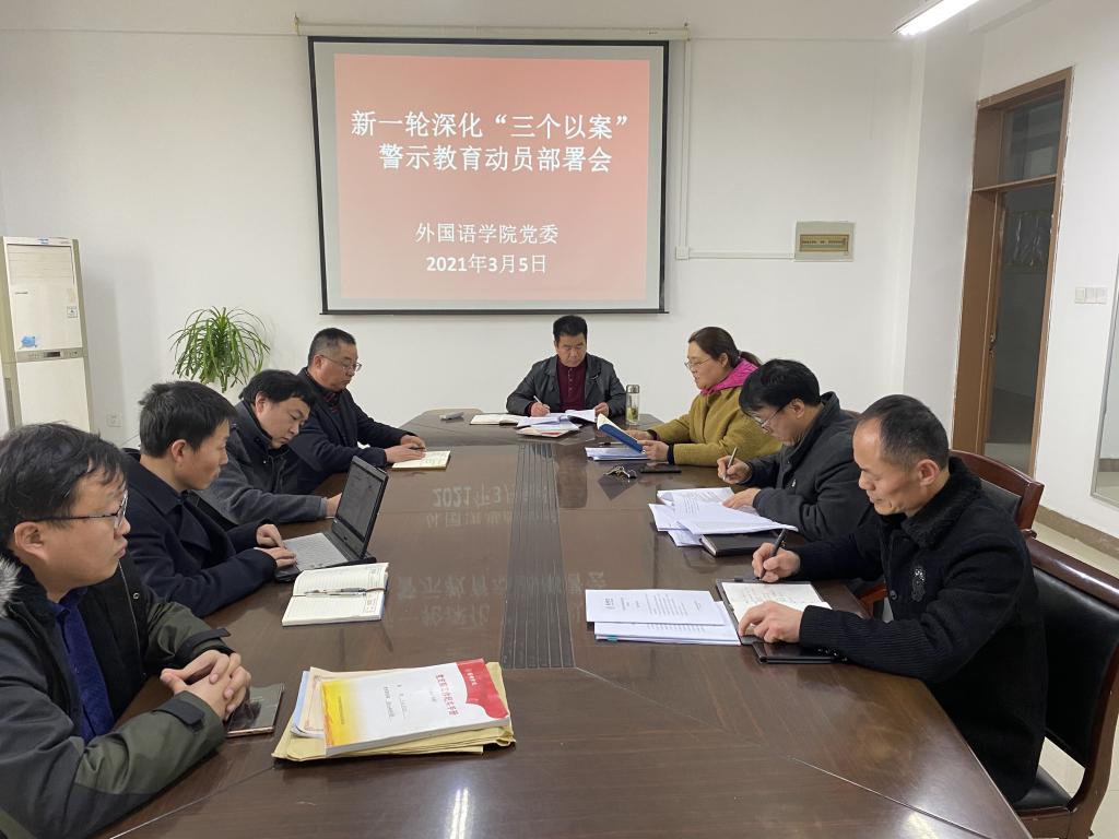 3月5日下午,外国语学院党委在逸夫楼A318会议室召开了新一轮深化“三个以案”警示教育动员部署会,院领导和科级干部参加会议。会议由院党委书记王华主持。