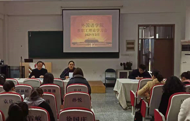 3月31日,外国语学院在逸夫楼一楼会议室召开了教职工理论学习会。学院党委书记王华、党委副书记、院长李加强、党委副书记、纪委书记、副院长郝景东及全体教师参加学习会。会议由郝景东主持。