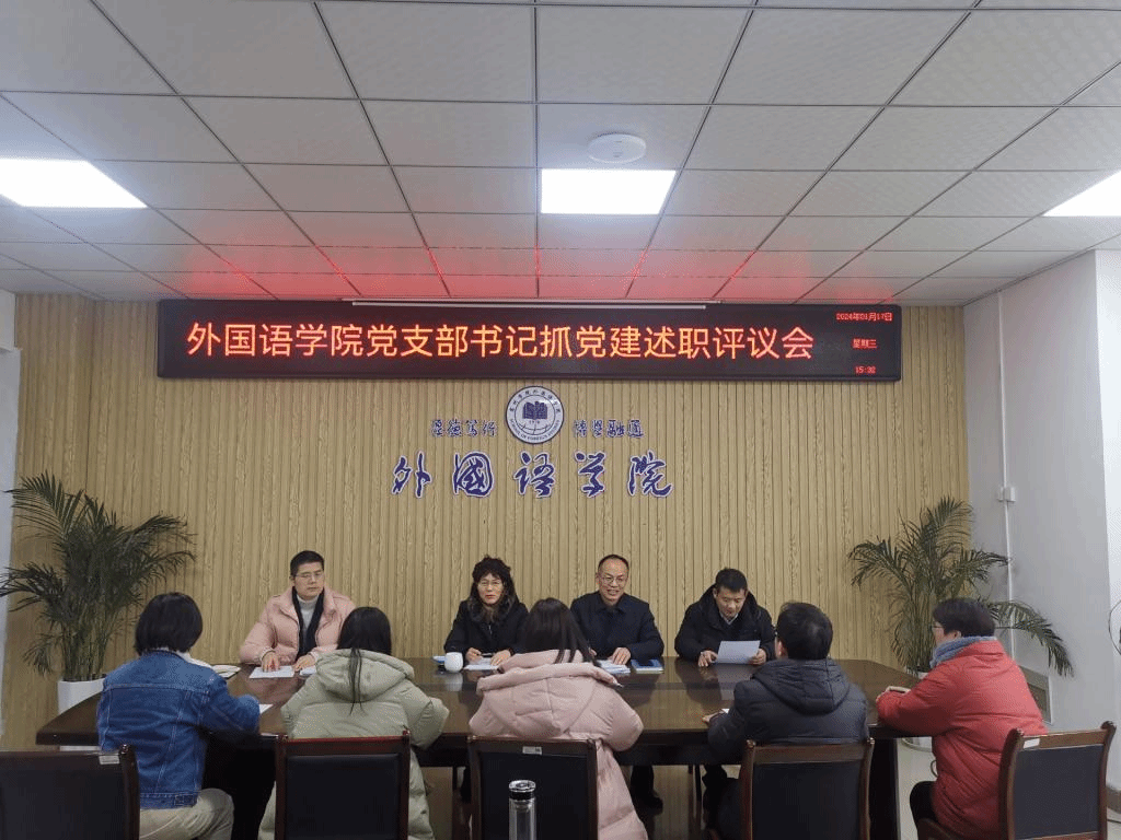 为进一步加强基层党支部建设,切实发挥基层党组织的战斗堡垒作用,1月17日下午外国语学院在逸夫楼A318召开2023年度党支部书记抓党建述职评议会议。党委副书记、纪委书记张亚锋主持会议,学院领导班子、党委委员和全体党支部书记参加。