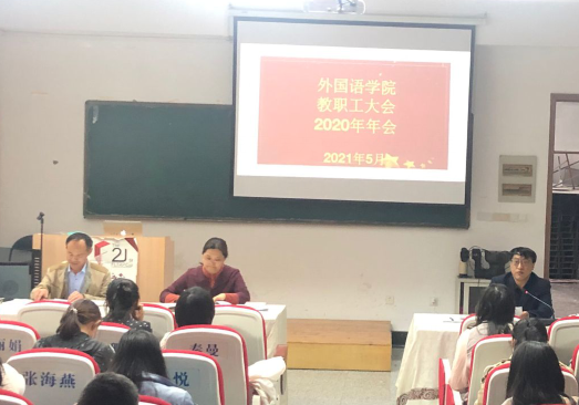 5月19日,外国语学院在逸夫楼一楼会议室召开了2020年教职工大会,学院党委书记王华、党委副书记、院长李加强、党委副书记、纪委书记、副院长郝景东及全体教职员工参加会议,会议由郝景东主持。