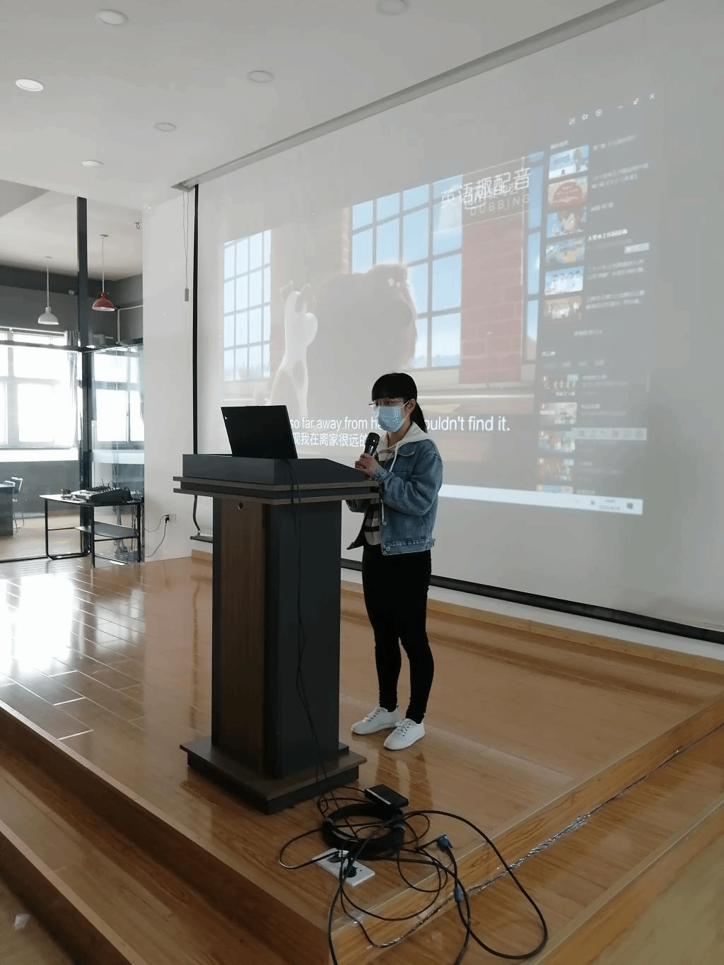 报名开始后,同学们都跃跃欲试,积极参加,纷纷提交了自己满意的配音作品,在经过艰难的初选之后,大约有二十二组进入了决赛。于是,在4月16号的下午迎来了决赛,在比赛中,他们默契配合,完美展现出了自己的魅力,带来了一场绝佳的视听盛宴。参赛选手们选取的配音作品题材广泛,总多原声英文动画和电影片段轮番上映,选手们对培养片段中人物情绪、情景氛围的准确把握和对人物语言的模仿都达到了惟妙惟肖的境界,同学们和评委们都被带入了一个个有声有色的英语世界。他们凭借清晰的发音、充沛的感情、恰当的语调、精彩的演绎给评委们留下了深刻的印象,无论是《小王子》带给我们的感动和思考,还是《猫和老鼠》中令人忍俊不禁的场景,又或者是《爱丽丝梦游仙境》中主人公的积极乐观……这些经典影片在同学们的声音中被赋予了新的情感,而这些片段跨越时空温暖了我们的内心。这个下午,同学们和评委们沉浸在满是趣味的英语世界,看到妙趣横生之处,热情高涨,掌声不断。最后,在主持人的宣布下,首届英语配音比赛圆满结束。