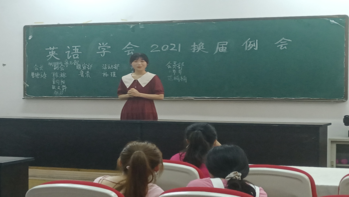 2021年6月6日下午,英语学会在逸夫楼一楼会议室举办了2021年度换届例会,本次例会由英语学会会长甘新宇主持召开,出席本次例会的有副会长、各部门部长、副部以及竞选骨干人员。