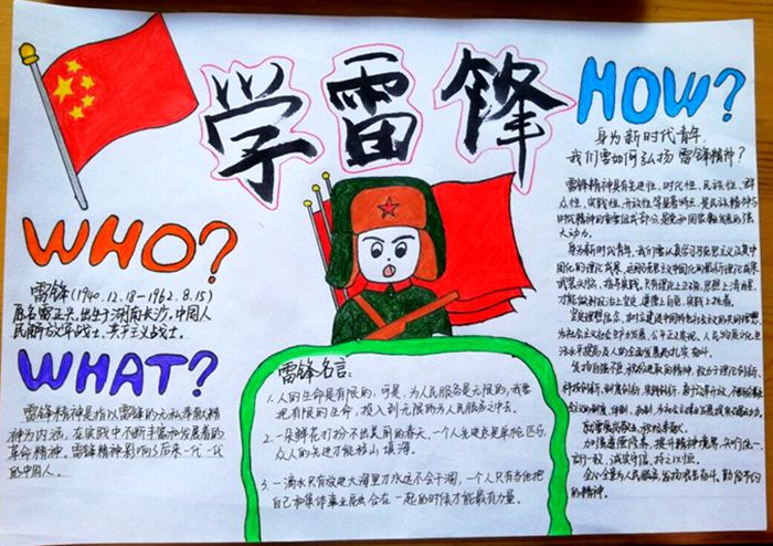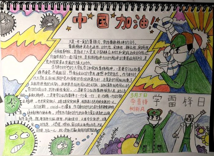 学雷锋,我们在行动。3月18日,外国语学院团总支学生会正式开展线上“雷锋月”系列活动之创意手抄报大赛,将传承雷锋精神和助力疫情防控结合。旨在通过熟悉雷锋事迹,感受雷锋同志高尚精神品质情操,引导广大同学弘扬雷锋精神,深化学雷锋活动,培养关爱他人,服务社会的优良品质。我院学生积极参与,奉献爱心,用自己的实际行动诠释着永恒的雷锋精神。