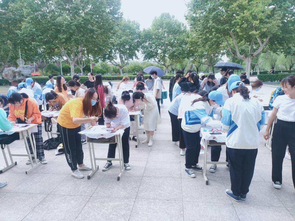 迎国庆彩绘活动时外国语学院的特色活动之一,已经连续举办了6届,活动得到了广大学生党员和团员青年的热情响应,经过初选共有26支队伍参加本届的活动,其中包括2021级新生团队、学生党支部团队。校团委书记凌峰、外国语学院党委副书记(临时负责)郝景东、院党委副书记兼纪委书记张亚锋和分团委书记赵婷婷出席活动。凌峰、郝景东分别致辞,希望同学们通过彩绘比赛,展示出新时代大学生风采,表达好爱党爱国情怀,践行好出彩中国梦,做有志气、有骨气、有底气的新时代青年。