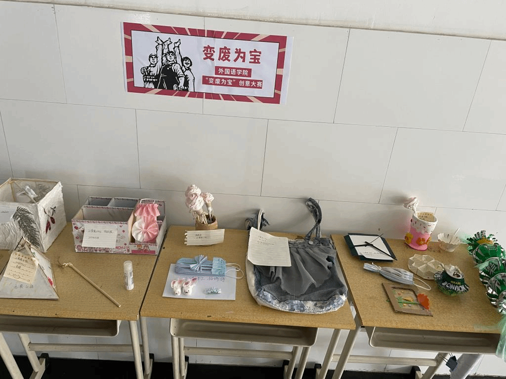 为了在大学生中倡导爱护环境、保护生态的意识,在消费的同时不忘环保,3月28日,外国语学院在逸夫楼A125举办“变废为宝”评选活动,部分学生会成员参与评选。