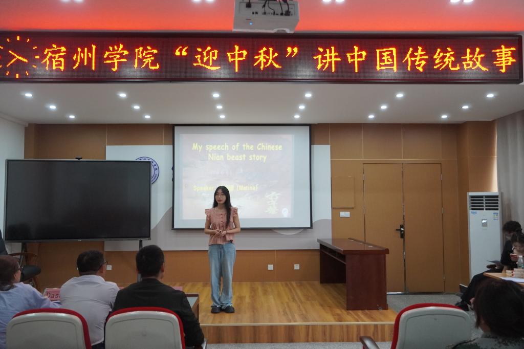 为庆祝中秋、国庆双节来临,提升学生的英语综合表达能力,9月27日下午,国际交流与合作处和外国语学院在逸夫楼一楼会议室联合举办了第五届迎中秋讲中国传统故事活动。活动由外国语学院分团委书记赵婷婷主持,出席的嘉宾有外国语学院党委副书记张亚锋、副院长胡永近、国际交流与合作处李庆照老师,以及在我校任职的外籍教师代表。