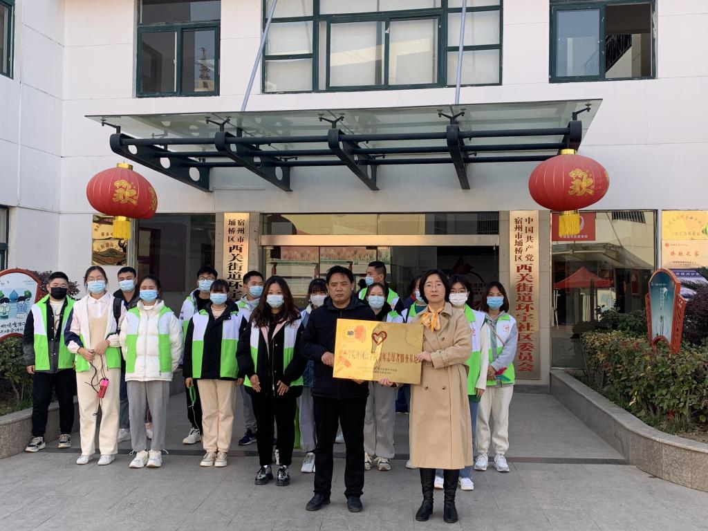为培养大学生奉献社会、帮助他人的志愿精神,给大学生搭建志愿服务与社会实践的平台,12月4日下午,外国语学院赴宿州市西关街道环宇社区举行志愿服务基地挂牌仪式。外国语学院分团委副书记赵婷婷和环宇社区党委书记王君伟出席挂牌仪式。