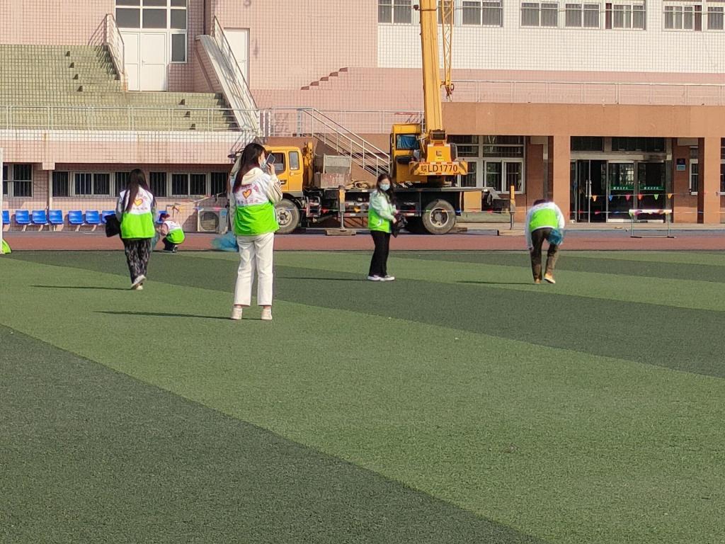 志愿者们先在操场门口集合,听从副队长的具体安排分成两个小组,分别对操场草坪和看台座位进行彻底清扫。活动中,同学们有的用手捡地上的垃圾,有的拿着扫帚仔仔细细地清扫地面,还有的拿垃圾桶等等。志愿者们不怕苦不怕累,对各种细微的垃圾、杂物进行了彻底清理,不留卫生死角,不勉强应付。整个操场上都有志愿者们的身影,操场环境在同学们共同努力下焕然一新。义务清扫活动持续了一个半小时,平时在死角残留的垃圾已清扫得干干净净。