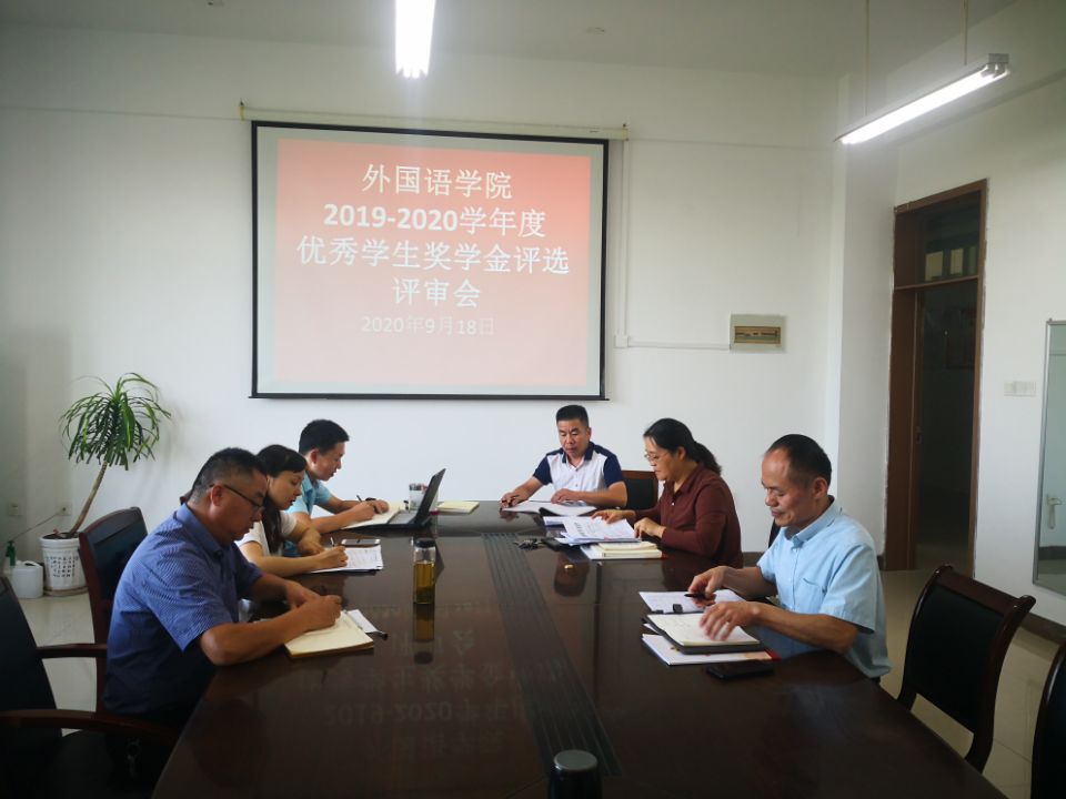 9月17日下午,外国语学院综合测评暨奖学金评审工作会议在逸夫楼A318办公室召开,党总支书记王华主持会议,全体学生工作团队成员参会。