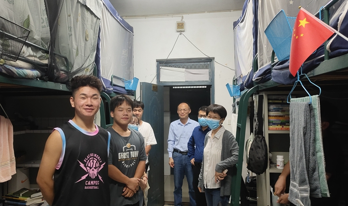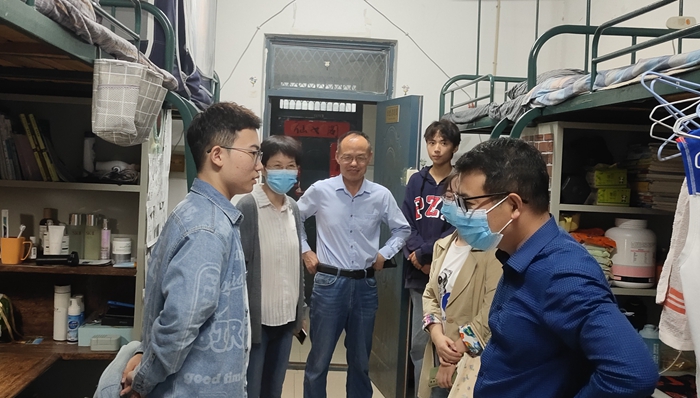 8月27-28日,学院高年级学生先后返校。为进一步了解学生返校后状态,激励同学们以更积极的精神面貌投入到校园学习和生活中,8月29日下午,院长张雁凌、院党委副书记(临时负责)郝景东、副院长胡永近及辅导员一行深入学生宿舍,实地了解学生返校后的学习生活情况,并为学生送去关心和问候。