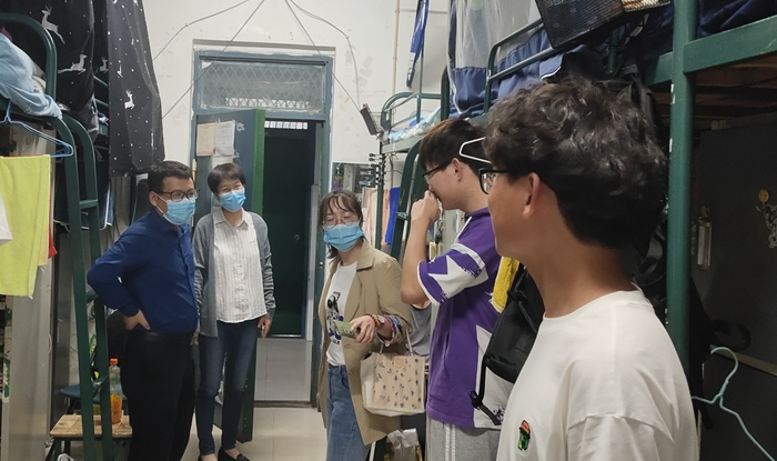 走访过程中,学院领导一行与同学们进行了亲切交流,详细了解学生的返校过程、居家在线学习、考试复习情况及返校后校园生活的感受,叮嘱同学们要严格遵守疫情防控期间校园管理要求、做好疫情防控常态化下的自我管理和个人防护,养成良好的生活卫生习惯,注意身体健康,保持积极的心理状态,共同营造安全有序的校园环境。