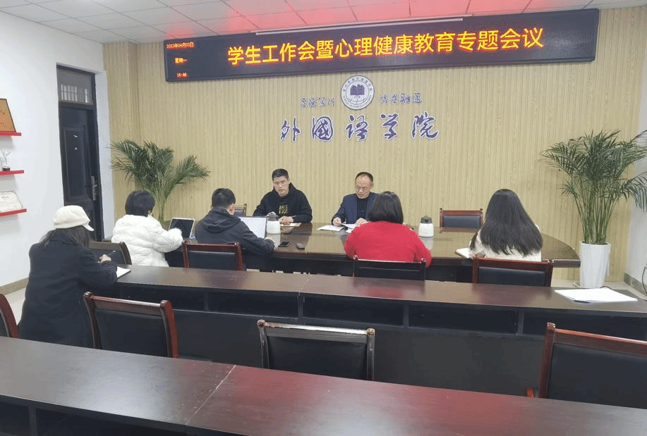 4月3日下午,外国语学院在逸夫楼A318会议室召开学生工作会议暨心理健康教育工作专题会议。会议由学院党委副书记、纪委书记张亚锋主持。院党委书记郝景东出席会议,全体辅导员、班主任参加会议。