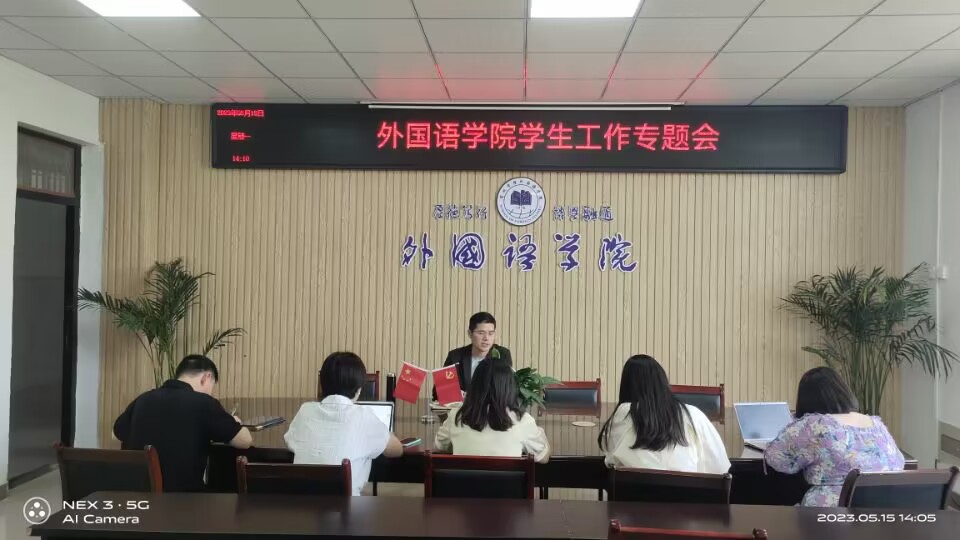 5月15日下午,外国语学院在逸夫楼318会议室召开5月份学生工作例会,外国语学院专、兼职辅导员参加会议,会议由党委副书记、纪委书记张亚锋主持。