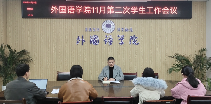 外国语学院于11月23日下午在逸夫楼318会议室召开了十一月份第二次学生工作会议。会议由党委副书记张亚锋主持,学院全体辅导员参会。