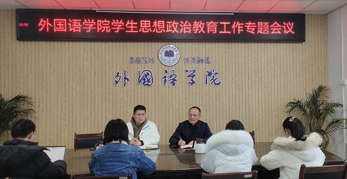 为贯彻落实学校学生工作会议精神,外国语学院学生工作团队于12月27日上午在逸夫楼318会议室召开了以学生思想政治教育工作为主题的学生工作会议,学院党委书记郝景东主持会议并做工作部署。学院党委副书记、纪委书记张亚锋,学生事务管理科、分团委和辅导员参加会议。