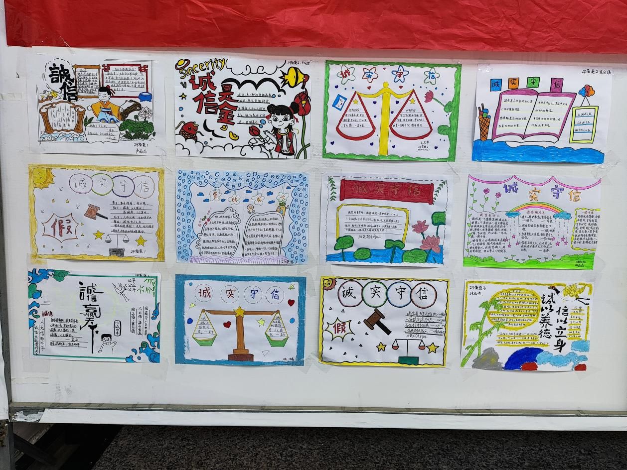 活动现场,在诚信主题展板上集中展示优秀手抄报创作成果。一幅幅设计精美的手抄报成为焦点:有的以水墨丹青勾勒诚信典故,有的用漫画形式揭露失信危害,还有的结合专业特色,用多国语言书写诚信箴言。