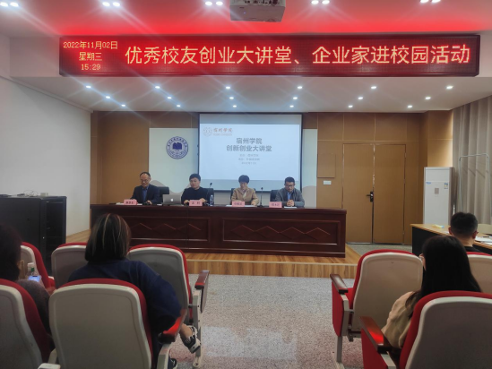 2022年11月2日下午,外国语学院2005届毕业生孟利应邀为外国语学院师生做了题为“我的创业”的创新创业大讲堂专题讲座。外国语学院党委副书记、院长张雁凌、外国语学院党委副书记(临时负责)郝景东、外国语学院科研副院长胡永近及90多名师生参加了讲座。讲座开始前,张雁凌、郝景东和胡永近分别为孟利先生颁发了宿州学院优秀校友、外国语学院创新创业导师和外国语学院校外辅导员的聘书。