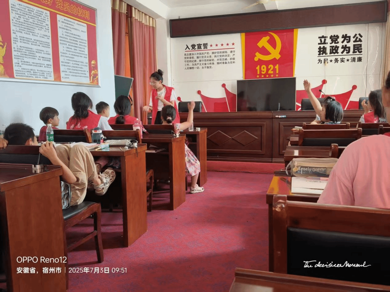 夏木阴阴正可人,爱心支教启新程。6月30日至7月4日,暑假伊始,宿州学院外国语学院与文学与传媒学院的志愿者们便组建起“萧风沐雨,育苗行动”暑期支教托管服务团,奔赴宿州市萧县龙河街道城西社区,开展为期5天的公益支教托管服务。团队以“点亮知识微光,陪伴儿童成长”为宗旨,通过定制化课程、趣味互动教学与成长关怀服务,为社区6-12岁儿童搭建起多元学习平台。此次实践不仅探索了高校服务基层教育的新路径,更让青年学子在奉献中收获了深刻的成长感悟。