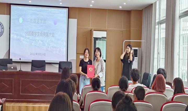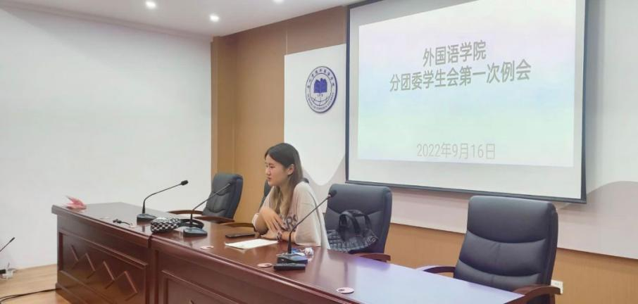 9月16日外国语学院分团委学生会在逸夫楼一楼会议室召开换届大会暨第一次例会,会议由分团委书记赵婷婷老师主持,外国语学院分团委学生会全体成员参加了本次会议。