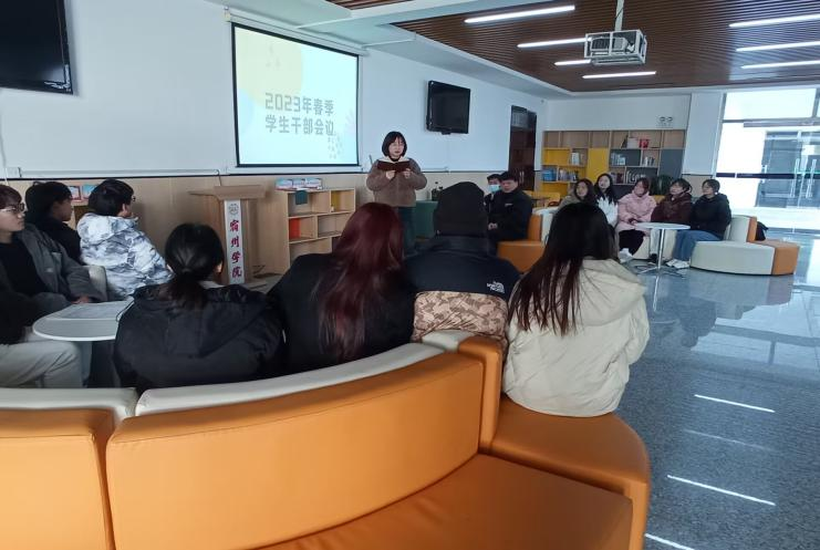 赵婷婷首先首先带领学生干部们开展了政治学习,强调思想政治教育对于学生干部的重要性并肯定分团委学生会、英语学会和志愿者分队在2022年取得的成绩,重点强调学生干部要提高政治站位,加强自身意识形态管理,同时加强对同学思想动态的关注,做好老师的信息员。