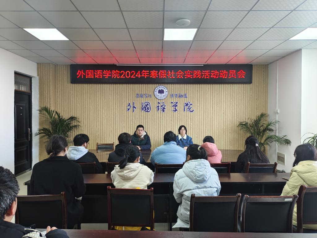 为增强同学们对寒假社会实践活动的认识,激发同学们对社会实践的热情,提高同学们社会实践的水平,12月22日外国语学院召集各年级各班分团委书记,在逸夫楼A318会议室召开寒假社会实践动员大会,会议由分团委书记赵婷婷主持,学院党委副书记张亚锋参加了会议。