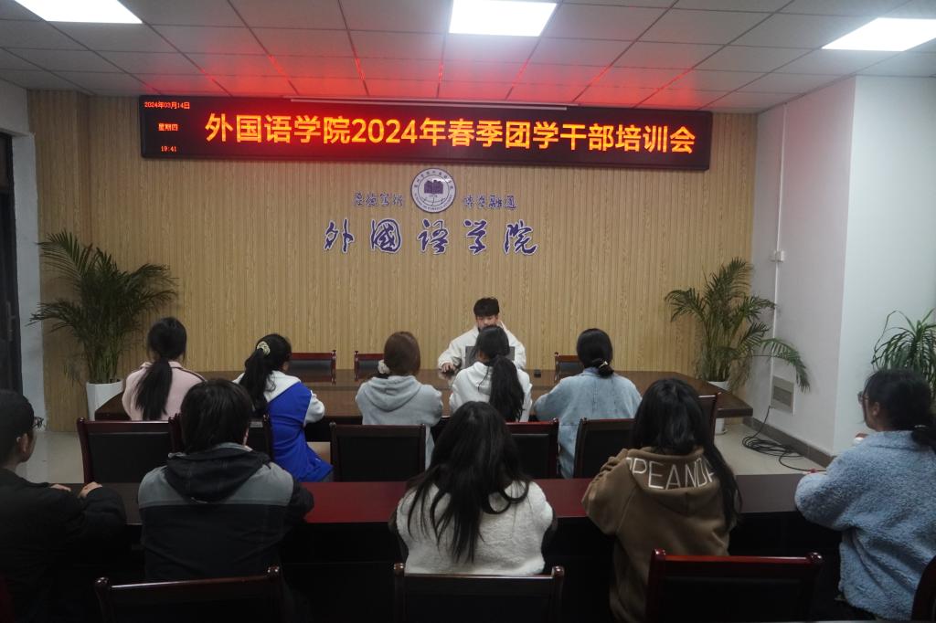 为提高团组织的凝聚力和向心力,更好推进团支部的组织建设,外国语学院分团委于3月14日晚在逸夫楼318会议室举办“2024年春季团学干部培训会”。培训会由分团委学生副书记季硕主持,全院团学干部参加了这次会议。