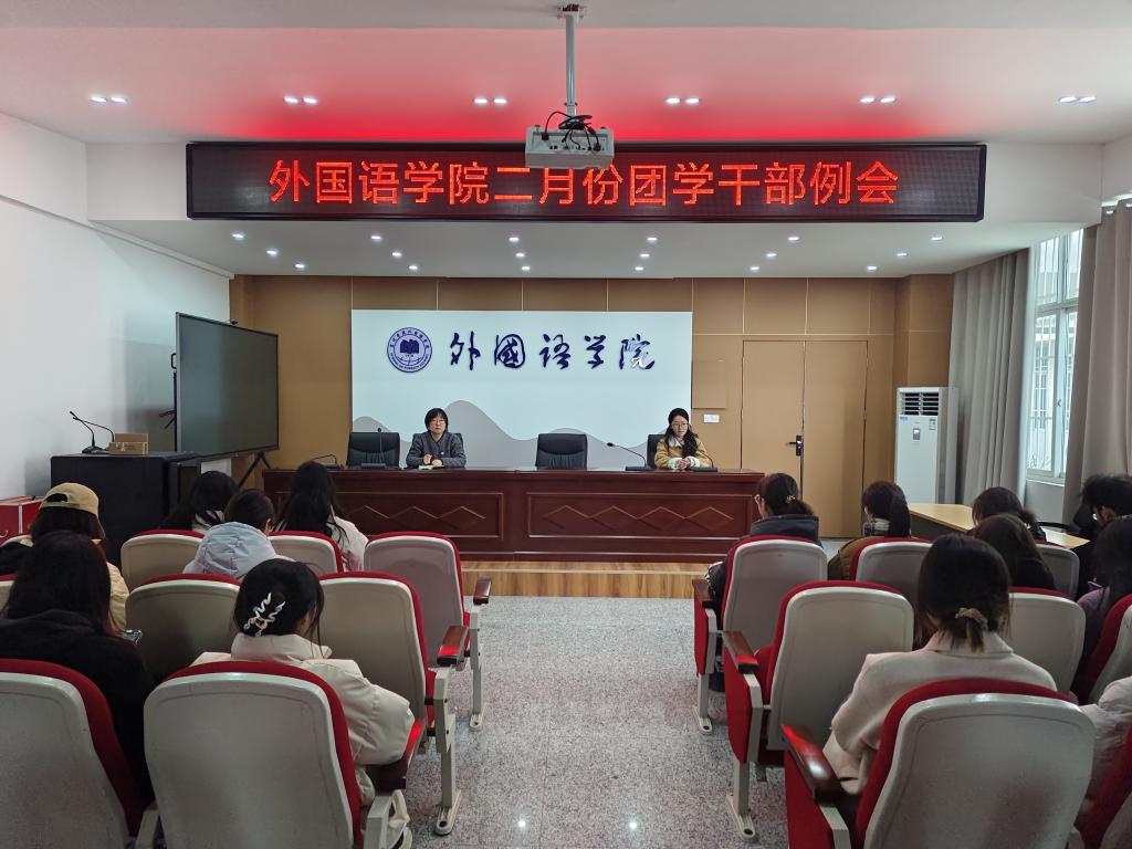 2月20日,外国语学院团委召开了二月份团学工作例会。本次会议由分团委书记赵婷婷主持,分团委主要学生干部、各团支部书记、委员及学生会主要干部参加了会议。