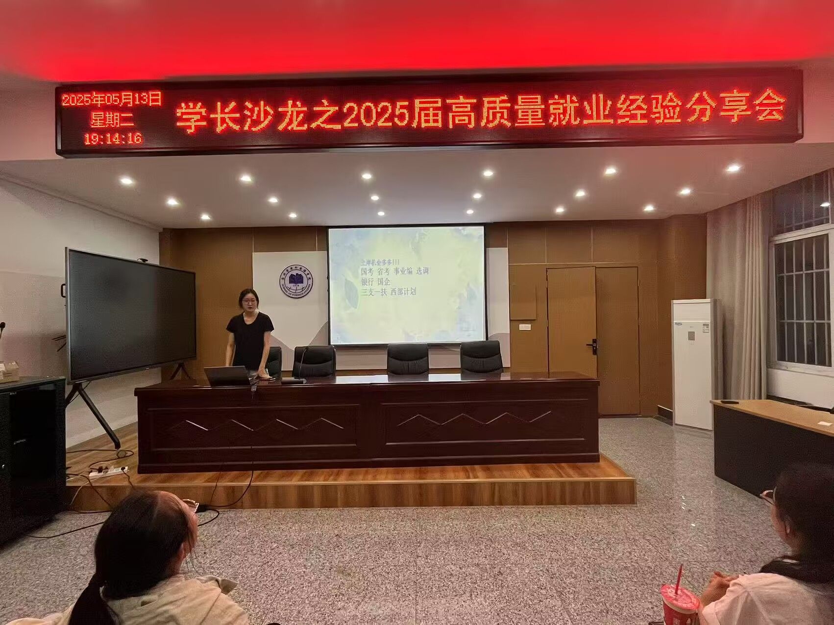 为帮助在校低年级学生更好地规划未来的学习和职业道路,外国语学院于5月12日和13日在一楼会议室分别举办了考研经验交流会和高质量就业分享会。